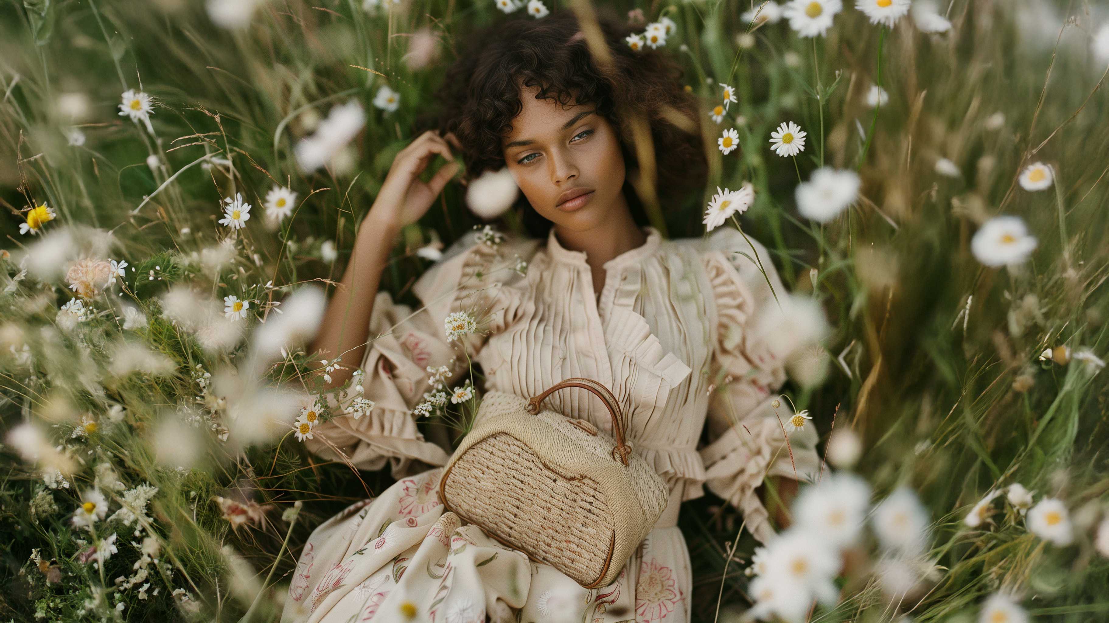 Exclusive Real Shot Light Coffee Blossom Large Handbag
